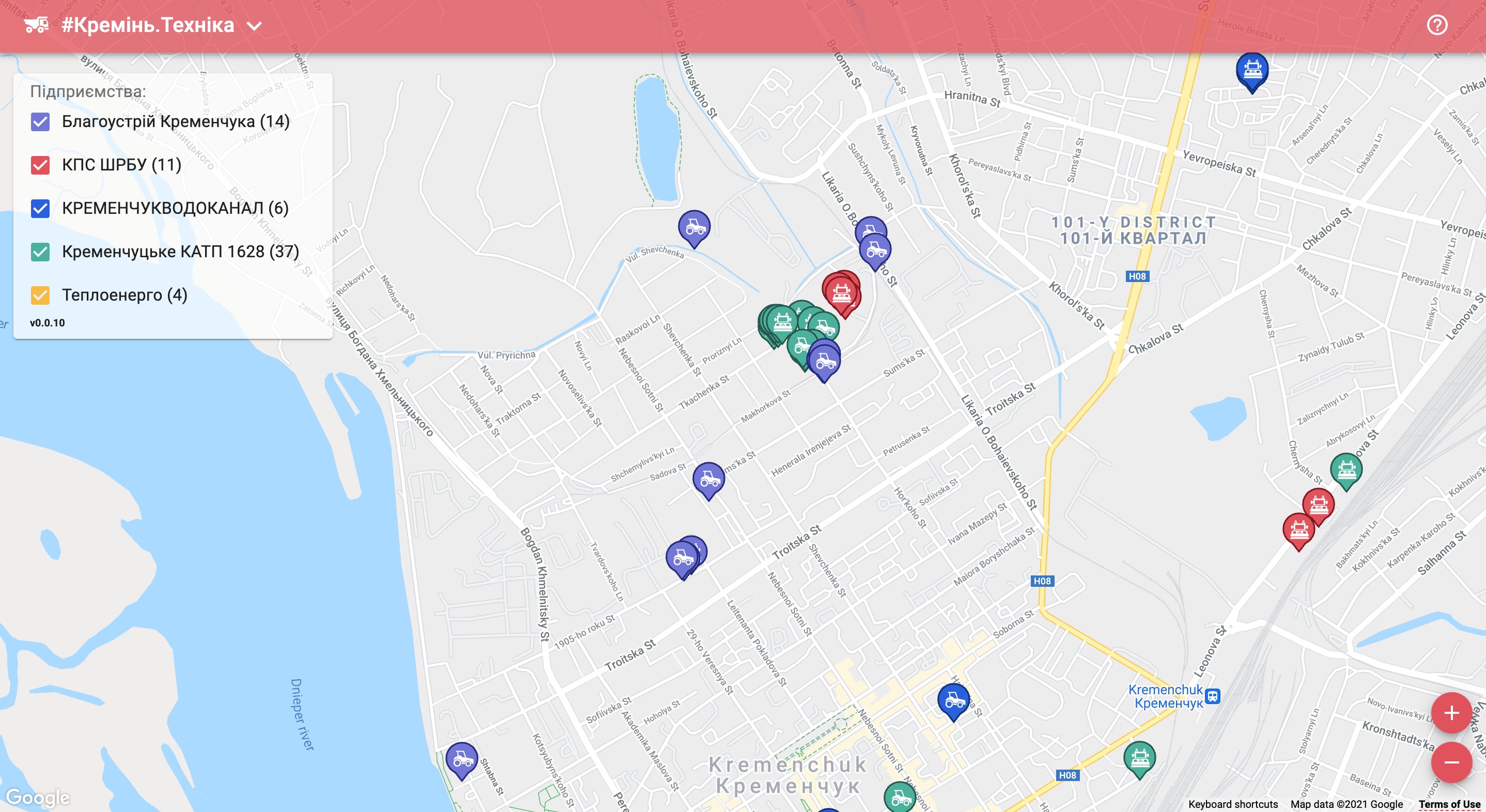 Карта руху комунальної техніки, снігоприбиральників, посипальників та тракторів.